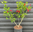 25 gallon and larger: These are mature trees, and most are ready to produce fruit or have already produced.   They have been pruned and shaped multiple times at this point.  Trunks are about 2” thick or larger.  Typical height is 6-10 ft.
