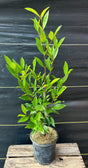25 gallon and larger: These are mature trees, and most are ready to produce fruit or have already produced. They have been pruned and shaped multiple times at this point. Trunks are about 2” thick or larger. Typical height is 6-10 ft.