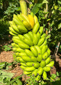 Bananas are one of the easiest and most exciting fruit producing "trees" to grow in Florida!  Botanically speaking they are not a tree, but rather a large herbaceous plant. Most varieties will produce their first bunch about 12 months after planting, with routine harvests every 3-6 months at maturity.  Banana plants are beautiful in the landscape, and can be fit into smaller spaces than most trees.  Overall, bananas may in fact be our #1 favorite fruiting plant to grow for many reasons, including their resiliency, year-round fruit production in South Florida, and the vibrant energy they offer to any landscape.