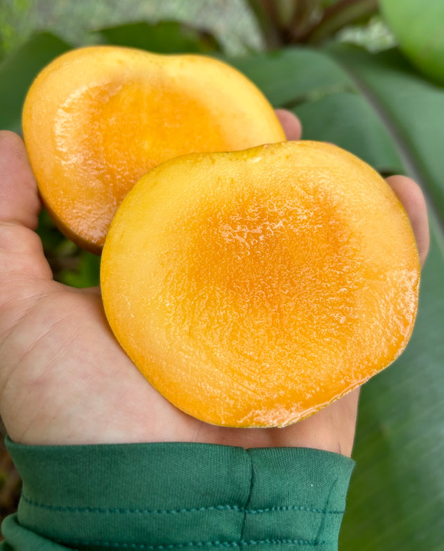 The undisputed King of Fruits! Mangos are widely celebrated around the world, and for us, Mango season is truly the most wonderful time of year. Originating in Northeast India, Mango trees have been in cultivation for thousands of years, spreading to every part of the world where the climate is suitable to grow them. Through many generations of cultivation and careful selection, a huge diversity of Mango varieties has been developed, leading to possibly the widest spectrum of flavors of any fruit in existence.