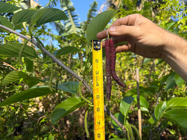 Mulberry fruit can be used in a plethora of ways. Eating fresh, ripe fruit off the tree is best, but you can also make Mulberry pie, jam, syrup, juice, and ice cream! Mulberries can be easily frozen and stored for later use. If you have your own special Mulberry recipe, we’d love to know - drop us an email so we can share it!