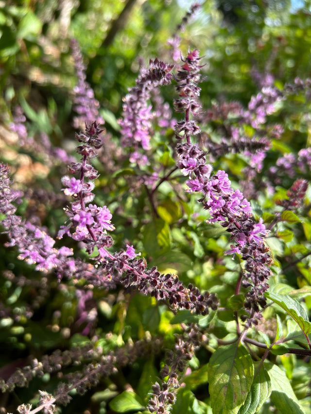 A long lasting, flowering basil. Much hardier than Genovese basil and tastes similar. Bees love this plant’s purple flowers.