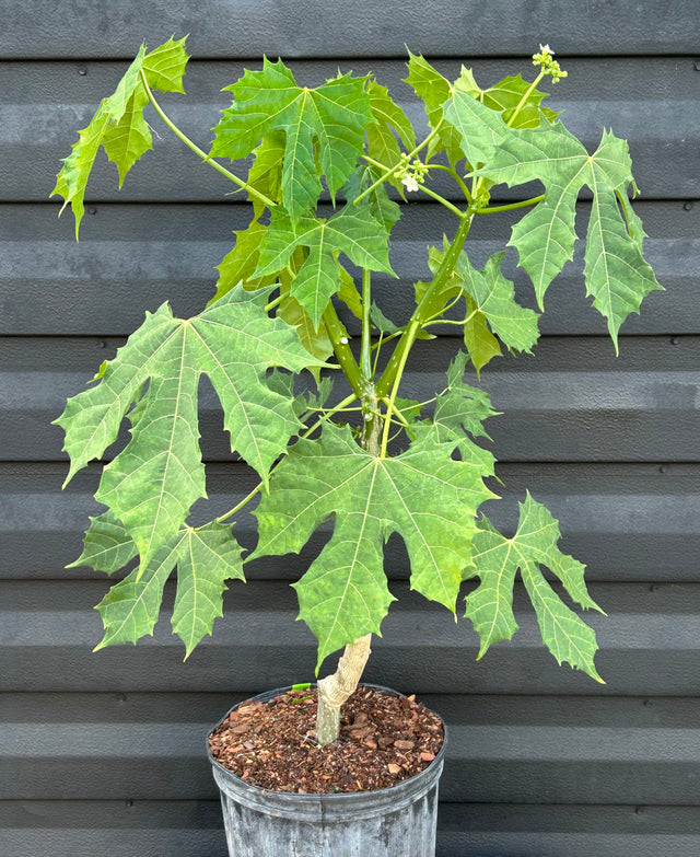 Also known as “tree spinach”, Chaya is an excellent leafy green similar to collards.  Steam or simmer the leaves and add garlic and your favorite spices.  Can grow 6 feet tall and 4-6 feet wide but is prone to getting blown over by strong wind at this size so plant where it will get some wind protection.
