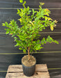 25 gallon and larger: These are mature trees, and most are ready to produce fruit or have already produced. They have been pruned and shaped multiple times at this point. Trunks are about 2” thick or larger. Typical height is 6-10 ft.