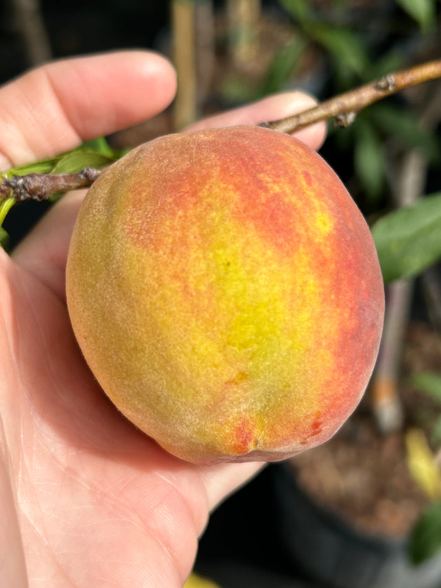 Generally, yellow-flesh varieties have lower chill-hour requirements, allowing for a warmer growing zone. Expect fruits in spring. We recommend netting or caging your fruits to reduce the number of your precious peaches shared with backyard critters.