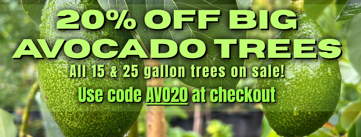 We sell grafted fruit trees in various sizes, ranging from young 3-gallon plants all the way up to 25-gallon and larger, mature trees.
