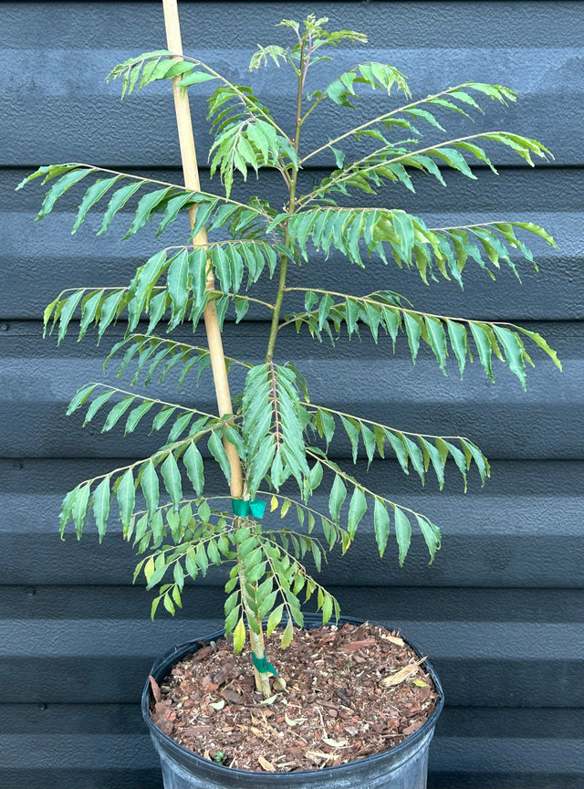 When planting, keep in mind that curry trees propagate themselves via root suckers (genetically-identical baby trees that grow from the tree’s root system). In some regions, curry is classed as an invasive weed so beware of the spreading nature if you plan to plant in-ground.