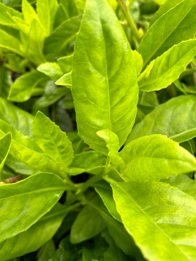 Longevity Spinach is a delicious tropical spinach that can be used as a ground cover. It is also called “cholesterol spinach” which likely refers to its potential health benefits of lowering blood sugar, inflammation, and cholesterol.